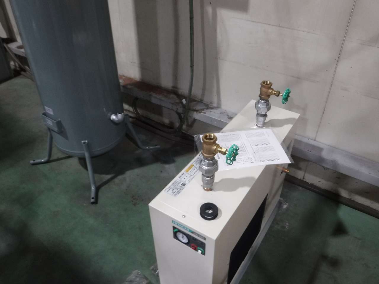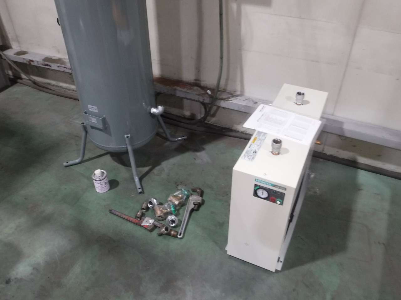 エアーコンプレッサーがまだ設置されていないので、ドライヤーとタンクのみ