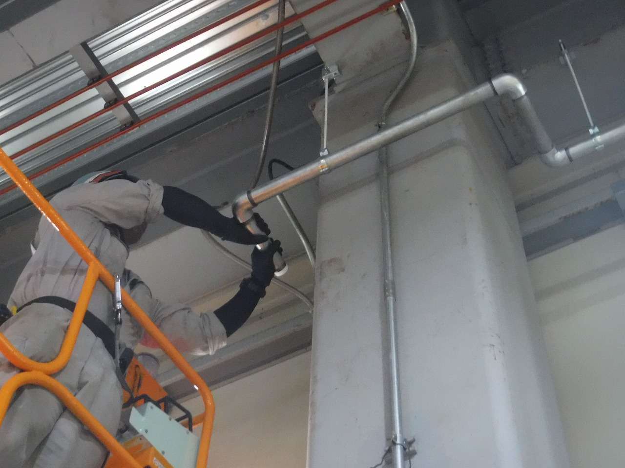 高所での作業なので、高所作業車を使用してます!
